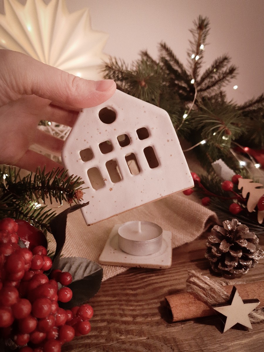 - Przeznaczenie: domek posiada podstawkę na świeczkę tealight wkładaną do środka (jeśli wolisz, możesz włożyć światełka led)