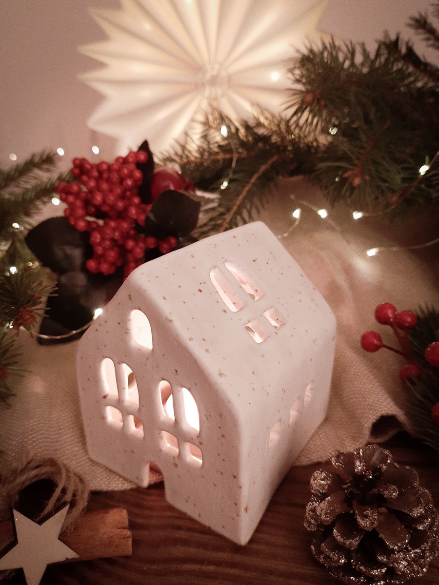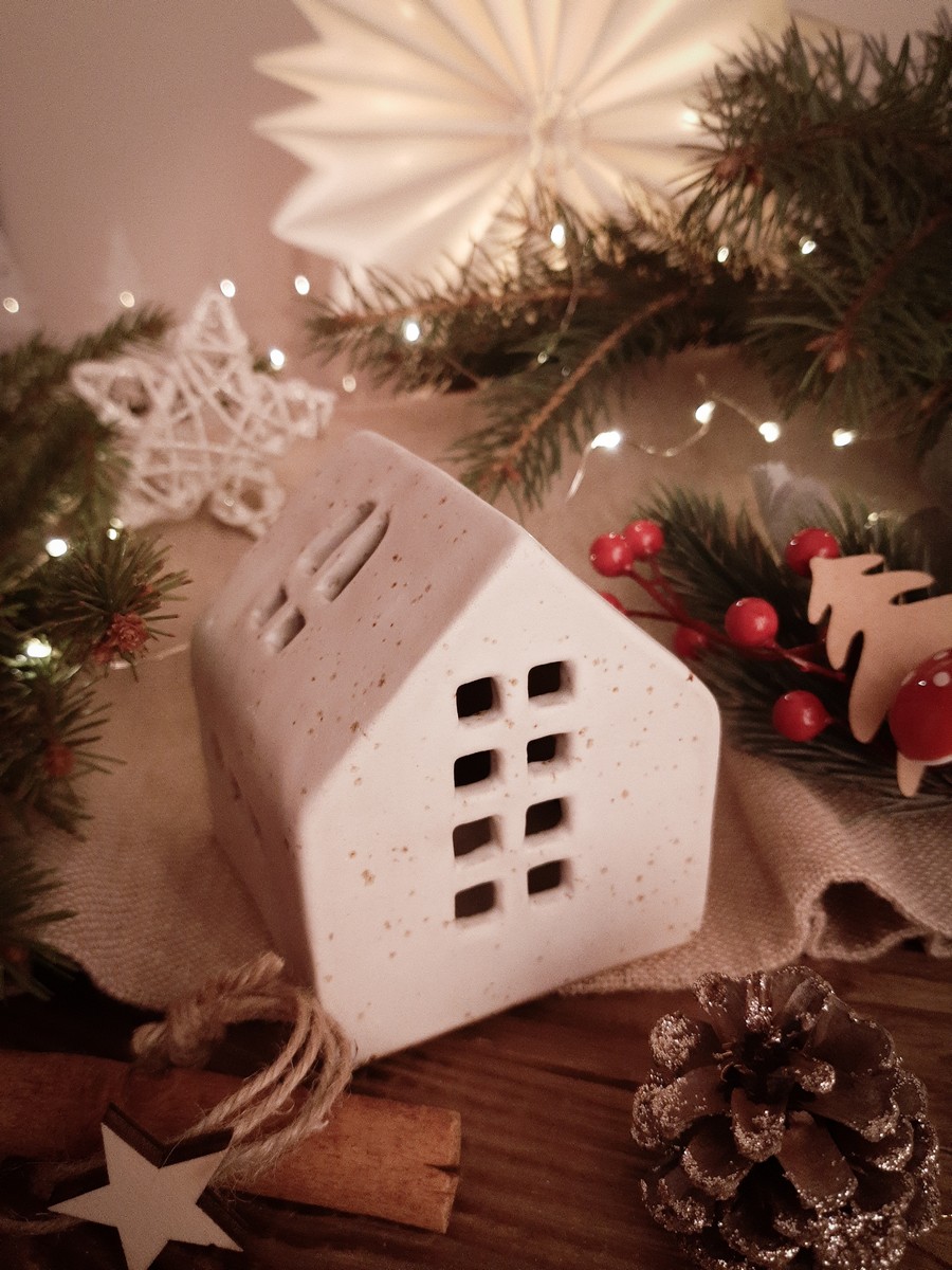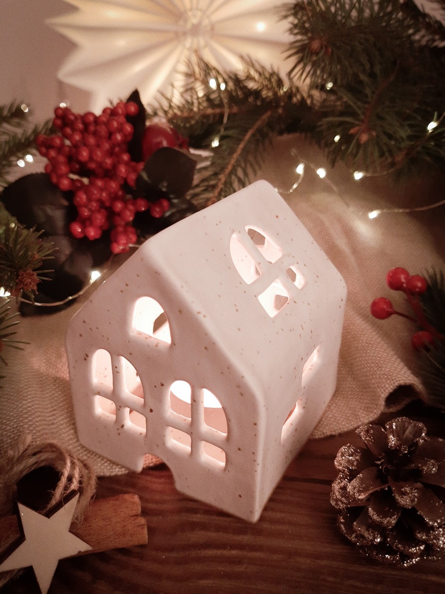 - Przeznaczenie: domek posiada podstawkę na świeczkę tealight wkładaną do środka (jeśli wolisz, możesz włożyć światełka led)